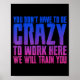 You Don't Have To Be Crazy To Work Here We Will Tr Poster