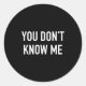 You Don't Know Me - Pular Quote Classic Round Sticker