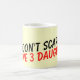 You don't scare me i have 3 daughters coffee mug. Cute gift idea for (new) dad or mum of daughters / triplet babies. Personalizable text. Family humour.