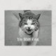 Photograph of a tabby-and-white cat snarling with customisable text printed below, "You figure it out."
