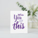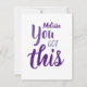 "You got this" with the lucky recipient's personalised name. Who do you know that needs a dose of inspiration and encouragement, and confirmation of their awesome abilities? Gift them this message of can-do confidence with this contemporary and minimalistic design of purple typography, elegantly and boldly reminding your special person, "You got this." Set on a white background on this flat greeting card, easily personalise the design with your desired name by clicking the personalise button. 2020 © Kris Harty Step by Step Inspiration