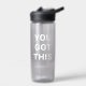 You Got This Simple White Colour | Named Charcoal Water Bottle design. You can leave the words "YOU GOT THIS" or personalise it with your own text. Add your name to it, too. It is simple and easy to customise to your need. Perfect for going away to college gifts or for someone who needs words of encouragement!