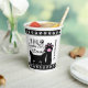 Add a cute cat touch to your birthday party with this adorable cat paper cup that says "You Gotta Be Kitten Me." The cat is black and is holding up one of its paws. There is also a background pattern of white paw prints. Touches of pink complete the kitty look. Customise with the name and age of the birthday boy or girl.