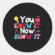 You Know It Now Show It Testing Day Motivational T Classic Round Sticker
