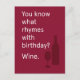 You Know What Rhymes W/Birthday? Wine Postcard