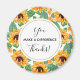 You make a difference magnet with a cute summery pattern. Pretty yellow sunflowers surrounded by green leaves in a repeating pattern. A circle with a faux gold border layered over top with your personalised text inside.