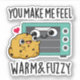 You Make Me Feel Warm And Fuzzy Funny Oven Pun features a cute cookie cuddling up to his pal oven . Perfect pun gift for family and friends who love cute food baking puns.