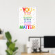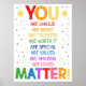 A great poster to hang in a school guidance counselor office, child therapist or child psychologist to remind kids that they matter! A very cute poster to decorate the classroom or office with! Features a bright, fun and cheerful colors.