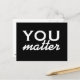 Motivational crafty character postcard featuring words by anonymous, "you matter". Inspired, inspiring and inspirational as well as encouraging, and motivating. Never forget.
