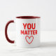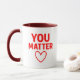 Start each morning with a message that matters! This ceramic “You Matter” mug features bold red lettering and a matching heart symbol on a sleek black background. With an 11 oz capacity, it's both microwave- and dishwasher-safe. A heartfelt gift for friends, family, teachers, or anyone in need of a daily uplift!