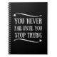You never fail until you stop trying motivational notebook
