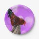 Pictured On A Fence On A Purple Bokeh Background Is A Nosey Rooster.