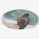 These funny birthday party plates feature a turkey vulture sitting on a lifeguard stand at a Connecticut lake.