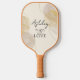 Light beige, a touch of gold, elegant black lettering. Feminine design that's not pink. A little less girly, but more ... serious. For pickleball fans. Suggested text with your name, like "[Ashley] plays with love."