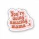 A sticker with a pinkish hue and red text. The text reads, 'You're doing amazing mama .x'