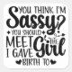 Declare your sassy mum pride with Our "You Think I'm Sassy You Should Meet The Girl I Gave Birth to" design perfect for all the moms who know that their daughters inherited their sense of sassiness. Great for family gatherings, outings, Birthday, Christmas