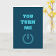 Surprise your loved one with this blue greeting card featuring neon ON Button.