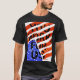 I give wanted to give this a 4 instead of a 5 because these Basic DARK T0shirts run unexpectedly SLIM or Narrow. Which is great if you do not have a potbelly, but I have a paunch. It isn't the shirt's fault that I've got a beer belly. The design and shirt itself is a quality cotton shirt. The color is more of a deep purple, but still a very pretty color. The Basic DARK T-shirts run a bit SLIMMER than the Basic Ts. The neck is a fraction narrower (or seems to be narrower) also. I'm a paunchy middle-aged woman and my neck is 12 inches (31cm) thick and the neckline fell about the same as in the photo of the man, and I had the desire to tug it a bit. So if you're a thick necked man or like loose shirts, be aware these are slimmer shirts. Once I get rid of my lockdown paunch it'll look great. The shirt washed well in cold water with no apparent bleeding. We don't have a dryer, so it hung dry. Did not shrink. Love the colors and the design. The design looks smaller on my shirt than it does on the model on-line. But still, it looks good on the shirt. The printing looks as it does on the model, just the size seems fractionally smaller. Washed garment in cold water, hung dry and design appeared unaffected.