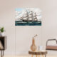 This is a remastered and enhanced reproduction of a clipper ship produced from a copy of the original oil painting by Antonio Jacobsen, a prolific late 1800s and early 1900s nautical art painter. We expanded the image, retouched it, and improved its clarity using AI tools and Photoshop to restore details and vibrancy. The reproduction artwork pays respect to Antonio N. G. Jacobsen, who painted portraits of the working ships of New York Harbour with precise hull lines, rigging, taut canvas, and lively seas. The original painting titled “Young America At Sea” is a true testament to Jacobsen’s skill as a talented nautical artist.