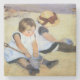 This design features a painting by the American Impressionist artist Mary Cassatt (1844–1926). It shows two young girls playing together on the beach. The children have their backs towards each other, and one of the girls is facing towards the viewer. They are both looking down at their hands, which are a holding a bucket and spade, used to build sandcastles on the beach. It's a beautiful image of traditional childhood, enjoying summer on the sand by the sea. The original artwork was painted in 1884.