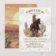 Retro Woodcut Western Desert Scene with a pretty young cowgirl riding her horse. Great for the cowboy or cowgirl that wants a country Western, Mexican, Southwestern, ranch, horse riding or desert themed party. Sunset desert landscape on the back. Colours of terracotta, yellow, cactus greens, browns and cream. All wording can be changed! To make more changes go to Personalise this template. On the bottom you’ll see “Want to customise this design even further? Click on the EDIT using Design tool. From there you can change some of the fonts & some colours, move things around or delete what you need. A little MiIdjourney generativecontent combined with hand drawn elements.