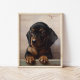 Carl Reichert’s Young Dachshund is a heartwarming portrait of a dachshund puppy, showcasing the artist’s remarkable attention to detail and ability to capture the animal’s endearing expression. The puppy’s soulful eyes and soft fur are rendered with exquisite precision, set against a neutral background that emphasises the subject’s charm and innocence. This delightful painting exemplifies Reichert’s talent for creating lifelike and emotive animal portraits, making it a timeless favourite for dog lovers.