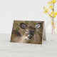 This Father's Day card features a gentle brown white tailed deer is looking right out at you from his hiding place in the woods. His big ears are alert. The face has white markings around the eyes and nose. A smaller image is inside along with text that can be customised to suit your needs.