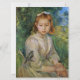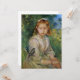 This design features a painting by the French Impressionist artist Berthe Morisot (1841–1895). It depicts a young girl in a natural landscape as she admires a small bird sitting gracefully on the branch of a tree. The girl has her hands crossed and is smiling as she looks at the bird. She is wearing a white dress and has ginger hair. The plumage of the bird is grey and green. There is greenery in the background, suggesting a verdant landscape. The sky is bright and the season appears to be summer. The original art was painted by Berthe Morisot in 1891.