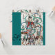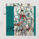 Vibrant ,cool ,artistic Art Deco design,whimsical brunette young girl with aqua blue green teal orange ribbon swirls ,winged cupid and elegant classy floral damask interior.