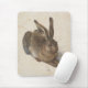 Young Hare by Albrecht Durer, 1502, is a detailed, naturalistic watercolor and gouache drawing of a young rabbit. Among the first artists to paint details of landscape and nature, here Durer’s precise brush captures the hare’s patterns of fur growth and coloration so vividly that the animal appears it could move.