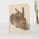 Albrecht Dürer, Young Hare, 1502, watercolor and body colour, Albertina, Vienna. Design on vertical greeting card with yellow gradient colour inside.
