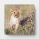A young lion sitting beside a termite mound. This image was taken on a safari in Kenya, Masai Mara Game reserve. © Angelika Stern