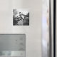 A young man holding a cat is an adorable photograph on this magnet. Sure to look great on that fridge.