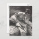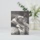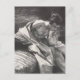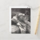 This postcard features a beautiful black and white vintage charcoal drawing of a young man in bed.
