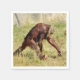 Young orangutan walking on grass napkin