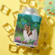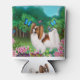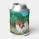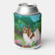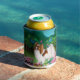 Original fine art design of a young Papillon dog with butterflies by artist Carolyn McFann of Twoh Purring Cats Studio printed on a quality beverage can cooler.
