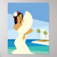 Young Spanish Lady posing with fan in ocean coast Poster