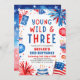 Young Wild and Three 4th July 3rd Birthday Party Invitation