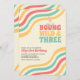Young Wild And Three Retro Groovy 3rd Birthday Invitation