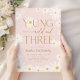 Young Wild Three daisy floral 3rd birthday party invitation Perfect for a floral theme birthday celebration. Cute girly design in muted blush pink. Features hand-drawn daisy flowers and trendy modern typography script font. Stylish, elegant third girls bday celebration with a touch of boho chic. Personalize with your own details. Printed Zazzle invitations and/or instant download digital printable template.