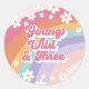 Young Wild Three Retro Rainbow 3rd Birthday Classic Round Sticker
