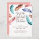 Young Wild & Three Watercolor Boho Feathers Invitation