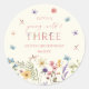 Young Wild & Three Wildflower 3rd Birthday Party Classic Round Sticker