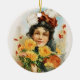 Young Woman with Yellow Chrysanthemums Ceramic Tree Decoration