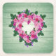 Pink roses in a heart shape wreath handing on a wooden wall painted pale green. A casual beautiful heart design that makes a beautiful theme for a bridal shower, wedding, anniversary, or Valentine's Day party.