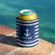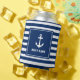 Your Boat Name Anchor Blue Can Cooler - Blue and White Stripes