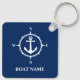 Nautical Your Boat Name Compass Anchor Blue Keychain