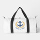 A nautical themed travel or gym duffel bag with your personalised name or boat name. This regal design features a boat anchor in rich blue highlighted with gold coloured laurel leaves and a gold star. The bag colour is a white or you can easily edit the design to any desired colour. with 2 sizes to choose from, this duffle bag makes a great gift.