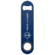 Your Personalized Name or Boat Name with a Nautical Compass and Anchor in White on a Stylish Navy Blue Long Bottle Opener.