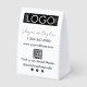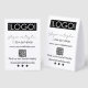 A black business logo branding Paper Table Tent sign featuring your business logo, slogan or tagline, phone number, website, custom QR Code and customized social media icons. A personalized Paper Table Tent sign perfect for shop windows and storefronts. Perfect for a business who would like their business details printed on a Paper Table Tent sign.